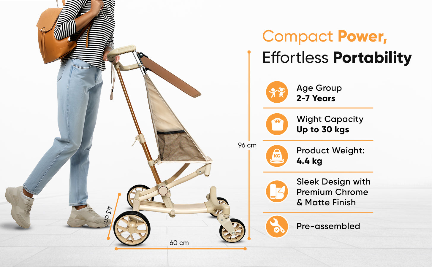 Weighing onlyย 4.3 kg, this stroller is incredibly easy to carryโ€”yet it can support up toย 22 kg, making it suitable from infancy to toddlerhood.