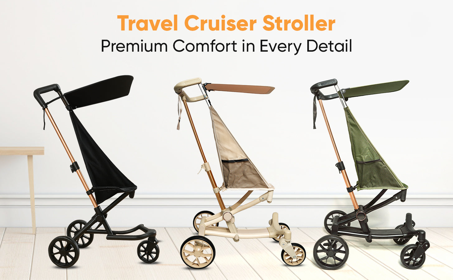 • Travel Cruiser: Lightweight (4.4 kg), for bigger kids (2โ€“7+ years) with wide seating and large wheels for stability.